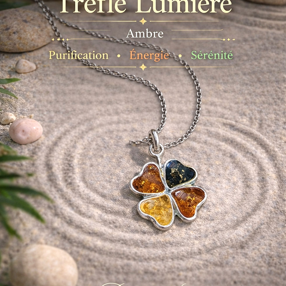 “Un trèfle de lumière à porter contre soi, pour attirer la chance et illuminer chaque jour.”